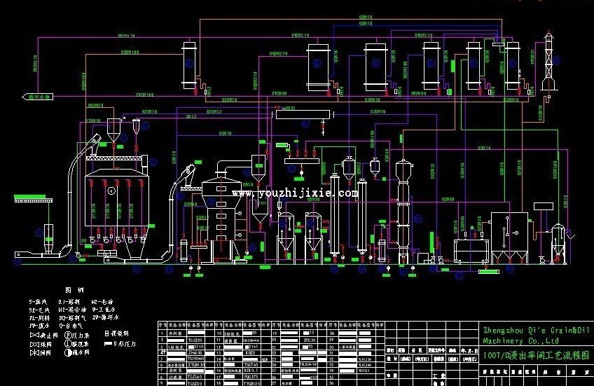 油脂大型設(shè)備之米糠油成套設(shè)備 每天100噸的工藝圖